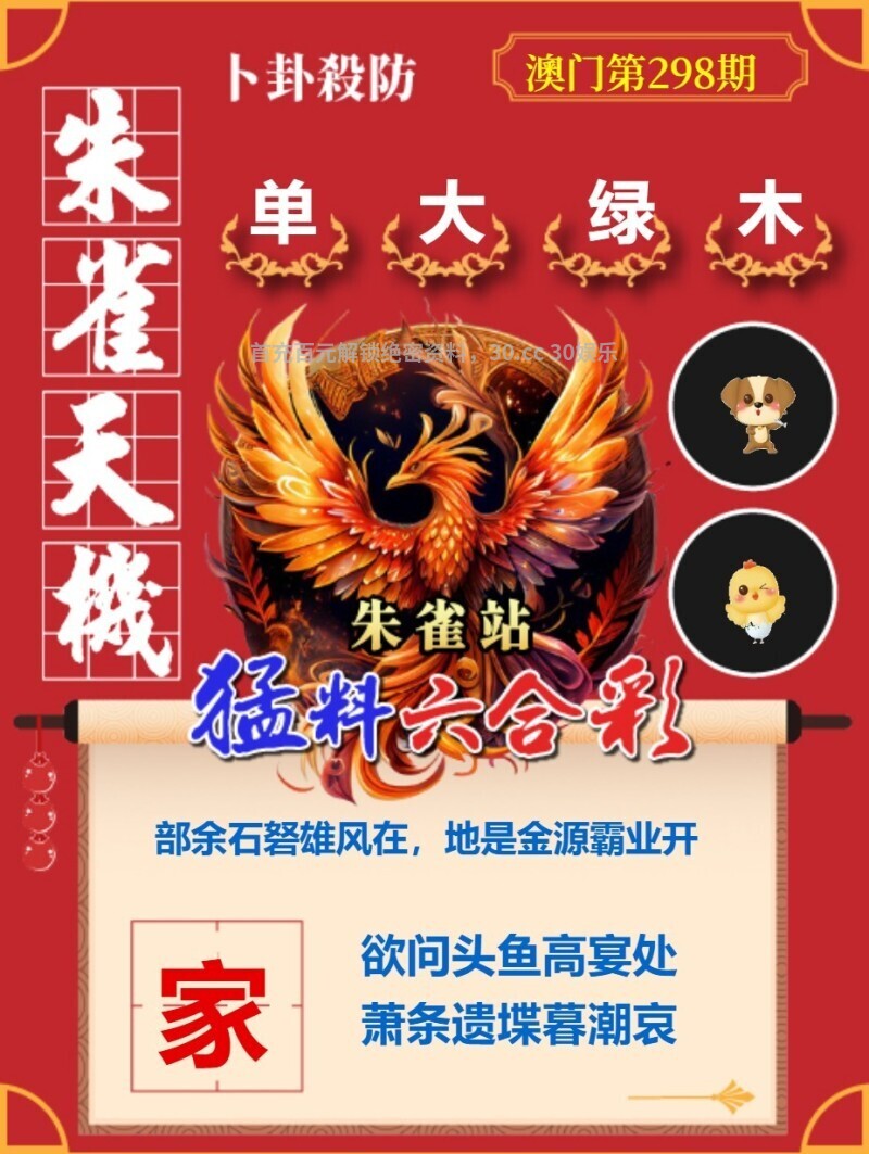 298期⑨肖:鸡马鼠羊猴龙狗蛇兔