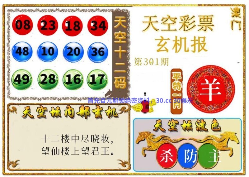 | 301期:红蓝绿肖【蓝绿】开:牛05准 |